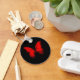 mariposa roja en una cadena de llaves negra.