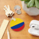 La bandera de Colombia ha sido ajustada hábilmente al fob circular de esta cadena de claves. Un práctico recordatorio de la herencia colombiana.