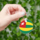 La bandera de Togo ha sido ajustada hábilmente al fob circular de esta cadena de claves. Un práctico recordatorio del patrimonio togolés.