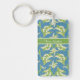 Una Keychain rectangular de bonito a personalizar, con un patrón de estilo Art Nouveau de Lilies-of-the-Valley sobre un fondo azul; de la colección Posh & Painterly 'For the Love of Lilies'.