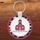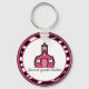 Cadena de teclas con el logo de La escuela rosa dentro de un marco de papel de cebra con guarnecido rosa. El texto dice "Maestra de segundo grado".