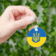 Cadena de claves con bandera de Ucrania con escudo de armas.