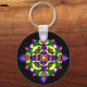 Un llavero con un patrón de Rangoli de colores brillantes sobre un fondo negro, de un diseño digital de Judy Adamson. ¡Un pequeño regalo perfecto para Diwali!