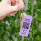 cadena de claves de código QR del personalizado. Color de fondo personalizado (utilice una luz). Texto personalizado en ambos lados.