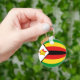 La bandera de Zimbabue ha sido ajustada hábilmente al fob circular de esta cadena de claves. Un práctico recordatorio de la herencia zimbabuense.