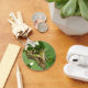 Esta impresionante cadena de teclas muestra una fotografía de una hermosa mariposa tropical. Tiene hermosas marcas de color verde iridiscente en todas sus alas. Tiene las alas dobladas mientras descansa sobre algunas hojas. La fotografía fue tomada usando macrofotografía para obtener un resultado asombrosamente detallado.