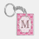 Personalizado de patrón de tejido de impresión de Relieve metalizado Monograma inicial Cadena de clave inicial de de cuarzo de cuarzo de color rosa caliente