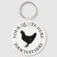 Cadena de llaves personalizado de silueta animal de granja de pollos. cadena de teclas de botón redondeado personalizado con nombre y presupuesto. Diseño de pájaros de época.
