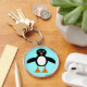 Este divertido keychain de Navidades presenta un lindo personaje de pingüino con una panza blanca, grandes ojos azules con pupilas negras y lindos pies naranjas y pico. Este pequeño y encantador ave de invierno hará las delicias de niños y adultos. El pingüino se sienta en un fondo azul pálido y helado para recordarle su frágil casa ártica.