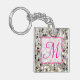 Pila de Encantos Purpurinas Shiny Shiney Plata Monograma Púrpura Rojo Primer Cadena de Teclas Personalizadas