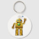 Los robots pueden ser amigables como lo demuestra este diseño. Este diseño es un robot amigable que está parado y ondeando. El robot es dorado y tiene un botón verde en el pecho y ojos verdes. Este diseño robot amigable se ve genial en este llavero. Perfecto para usted o como regalo