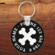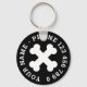 Cadena de teclas personalizado con los huesos cruzados, nombre y número. Cadena personalizada de claves de anillo redondo con nombre y número de teléfono. Impresión a dos caras. Agregue su dirección de forma opcional. Se puede cambiar el color de fondo. Ejemplo blanco y negro. Diseño óseo Guay con letra negrita. También útil para mascotas.