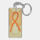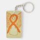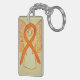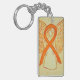La cadena de teclas del ángel de la guarda presenta el arte de una pintura de ángel de cinta para la toma de conciencia por parte de los naranjas. La cadena de claves de arte de la cinta de ángel de la conciencia del naranja se puede personalizar con mensajes personalizados para hacer grandes campañas de recaudación de fondos, regalos de concientización u otros eventos o ocasiones especiales.