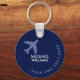 Un diseño sencillo y agradable de un avión en una cadena de claves azul oscuro, personalizado con nombre y texto... especial para un piloto, profesionales del aeropuerto o agencias de viajes.