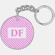 Llavero Cadena de teclas de bandas rosadas/blancas inicial