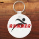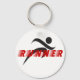 Este llavero tiene la palabra corredor en él que parece que el viento sopla a través de él con una silueta de una persona en marcha en el fondo.