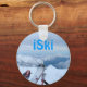 Gran cadena de claves de aspecto, con mucha nieve en las montañas y los puntas de los esquís de nieve mostrándose en el fondo. El texto lee iSki y se puede cambiar para leer lo que quieras. Ideal para cualquier esquiador de nieve.