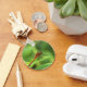 Esta cadena de teclas muestra una libélula roja sobre un fondo verde y amarillo.