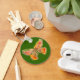 Un teclado circular verde oscuro adornado con una mariposa pintada delicadamente.