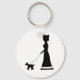 Añade un poco de encanto a tu día con este keychain que cuenta con una silueta original dibujada a mano de una dama victoriana para pasear con su perro.