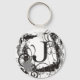 Cadena de teclas monograma con ilustraciones de gruns en negro y gris