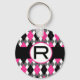 Cadena de teclas monograma con diseño de argyle rosa caliente y negro