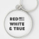 Esta cadena de claves presenta un diseño audaz y patriótico con la frase "RED WHITE & TRUE" en letras mayúsculas. El diseño incluye una imagen de la bandera de los Estados Unidos en escala de grises, colocada a la derecha del texto. Este llavero, hecho con material de alta calidad y duradero, es perfecto para mostrar su orgullo nacional. Su tamaño compacto lo convierte en un accesorio elegante y práctico para sus llaves, bolsas o como un regalo atento.