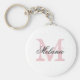 Teclas de nombre monograma personalizadas. Letra inicial vintage con tipografía de escritura elegante. Idea de regalo de favor para mujeres y chicas. Haz tu propio regalo monogramado para boda, ducha de novia, soltera, fin de semana de chicas, compromiso, aniversario, cumpleaños, etc. Diversión por ser novia, dama de honor, chica de flores, madre de la novia, madre del novio, etc. Rosa y blanco.