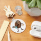Carácter de frijol de café de arcilla hecho con arcilla de polímero que se hornea en un horno y se pinta con acrílicos. El producto final es fotografiado y mejorado digitalmente.