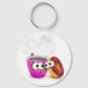 Un lindo diseño de un café caliente y un donut juntos. Tanto la taza de café como el donut tienen ojos y se miran entre sí. Este café caliente y el diseño de un donut se ven muy bien en esta Keychain