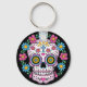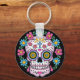 El cráneo de azúcar del Día de los Muertos está rodeado de flores de colores.