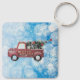 Llavero camión de cosecha roja sobre fondo de copo de niev