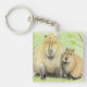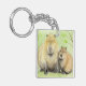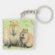 Una diminuta pintura acuarela de una madre de Capibara con su bebé.