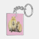 Una pintura acuarela de una madre de Chigüiro con su bebé adorna esta cadena de llaves. Personalizar cambiando el color de fondo para que se adapte a ti mismo!