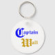 Elegante llavero para el barco Capitán Walt — con letras caligráficas azules y doradas.