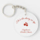 Este llavero de acrílico personalizado “She's the Cherry on Top” combina encanto juguetón con practicidad diaria. Un texto en rojo negrita se sitúa en la parte superior, junto a un par de cerezas dibujadas a mano y alegres en la parte inferior, mientras que un pequeño espacio permite la personalización con el nombre de la novia, la fecha del evento o un mensaje corto. El diseño limpio en rojo sobre blanco mantiene intacta la estética caprichosa y retro de la colección, lo que lo convierte en un favor divertido, elegante y memorable. Perfecto para fiestas de compromiso, despedidas de soltera o celebraciones con tema de cereza, este llavero es un recuerdo lindo que los invitados llevarán consigo mucho después del evento.