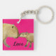 Una pintura acuarela de una madre de Chigüiro con su bebé adorna esta cadena de llaves. Personalizar cambiando el texto o el color de fondo para que se adapte a usted mismo!