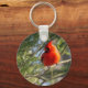 Cardenal alegre golpea una pose en un pintoresco pinar, agregando una divertida foto a un retoño de claves robusto.