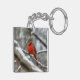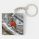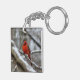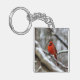 Un cardenal rojo brillante agrega un toque de color en un día espantoso y nevado.