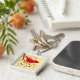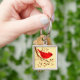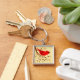 Cardenal rojo del norte en ramas estilizadas con hojas decorativas en colores de otoño sobre llaveros