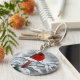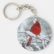 Cardenal rojo en la cadena de nieve para los amantes de las aves y la naturaleza. Este llavero presenta una escena de invierno de un hermoso cardenal norte del sexo masculino sentado en una rama en un día de nieve.