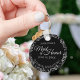 Estas hermosas cadenas están diseñadas para ser entregadas como un regalo o un favor de boda a tu criada de honor. El elegante diseño presenta un Relieve metalizado de imitación gris plateado con texto gris claro sobre un fondo negro clásico. Hay espacio para su nombre, la fecha del boda y los nombres de la pareja. ¡Excelente manera de agradecerle por ser parte de su día especial!