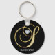 Hermosa cadena de claves con diseño de monograma de letra 'S' en oro con falso corazón de diamante. Plantilla modificable: agregar nombre o eliminar. ¡Un regalo perfecto para cualquier ocasión!