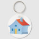 Una bonita casita azul con un techo rojo. Este diseño parece realmente efectivo en esta cadena de claves