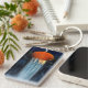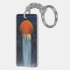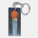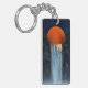 Una maravillosa cascada en cascada se desliza hacia abajo sobre un acantilado rocoso con la luna llena de fondo. Azul y Naranja al arte original de color rojo del artista Jason Girard.
