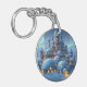 Keychain of an impressive castle made of igloos and stone, in a winter landscape of snow and pine trees. Magical aurora lights play in the evenfall sky, bathing the mountains and valley in a surreal atmosphere of heavenly colors. Amidst the misty strands of cold and snow, the stronghold castle known as "Winter Fire" stands. It is the last bastion of civilization and warmth before a vast expanse of frozen tundras, snowcapped mountains, and haunted forests open themselves to the wanderlust of the willing traveler... This artwork was created with ImageFX and upscaled with Leonardo.ai. Additional editing was done offline by me.