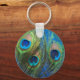 Esta fotografía azul de plumas de pavo real fue tomada con una lente de ojo de pez. Estas tres plumas tienen un hermoso color y hacen una gran idea de regalo. El fondo azul resalta los colores de los ojos de plumas de pavo real.