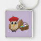 Un ilustracion de una linda lechuza personalizado con una boina roja francesa y una canasta marrón nativa llena de coloridos huevos de Pascua pastel. Este adorable y divertido diseño de aves es una idea de regalo para los amantes de la caza de huevos en Pascua y para los amantes de los animales.