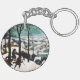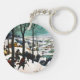 Cadena de claves con Pieter Bruegel, la pintura al óleo sobre madera del anciano Los cazadores en la nieve (1565). Un pueblo cubierto de nieve recibe a un grupo de cazadores y perros. Los aldeanos patinan en los helados lagos. ¡Un feliz regalo de Navidad!