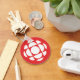 Creado por la firma de diseño suizo-canadiense Gottschalk + Ash, en una nueva revisión de la "joya" de Burton Kramer. El color rojo representa a Canadá de manera simbólica, la forma radiante respeta el ADN de la marca CBC y no se perderá en la traducción. Los canadienses todavía reconocerían esto como el logo de la CBC y la estructura mejorada — menos partes visuales y color — encaja en múltiples pantallas, legible en un teléfono móvil, laptop o en papel y visualmente menos saturada. Usada desde 1992 - presente.